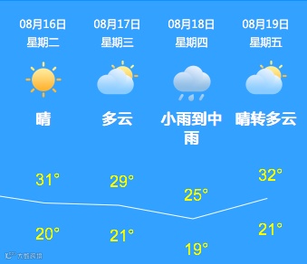 /// 16日—17日:北京最高温不超过31摄氏度,最低温在20摄氏度及以上。北京气温较为适宜,但温差较大,请做好防晒防暑以及降温准备。