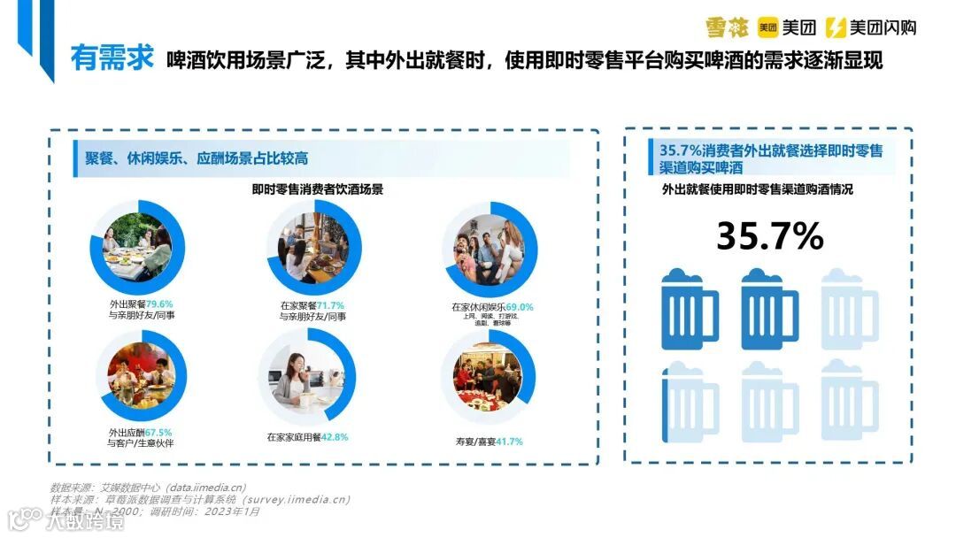 如今消费者外出就餐不再受到局限,将使啤酒在多元外出场景中持续渗透,啤酒饮用场景越发广泛,使用即时零售平台购买啤酒的需求逐渐显现。