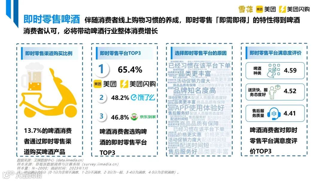 白皮书数据显示,13.7%啤酒消费者通过即时零售渠道购买啤酒,即时零售平台发展态势向好。