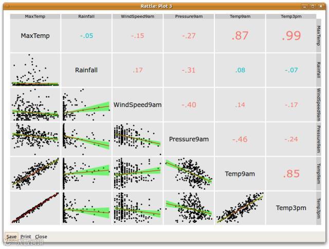 Rattle(易于学习的 R 分析工具)提供数据的统计和可视化摘要,将数据转换成容易建模的形式,从数据中构建无监督和监督模型,以图形方式呈现模型的性能,并得出新的数据集。