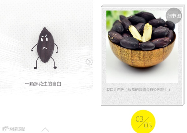 上面的H5就是一个例子,通常情况下卖花生,很多人都是普通的卖花生,但我们把花生的故事拿出来“卖”,消费者可能被故事打动了,同时觉得9.9包邮也不贵,他除了购买可能还会帮你传播,但是让他传播的动机往往不是花生,而是花生的故事。
