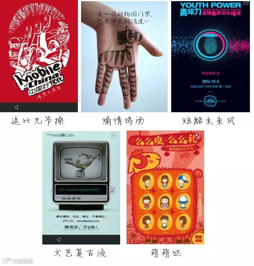 试不爽的包括:逗比无节操范,煽情鸡汤魂,酷炫未来风,文艺复古流,萌萌哒掐出水。下面是一些案例: