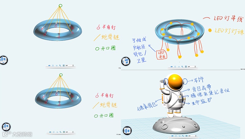 考虑到课时的安排,学生建模能力的水平,最终决定采用宇航员手机支架+星环灯的形式来制作一个小夜灯。