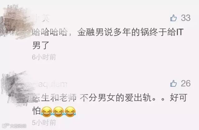 而IT男,则是男性出轨率最高的,出轨率占比10.6%,金融业8.2%,教育业6.5%,医生4.6%,律师3.8%。