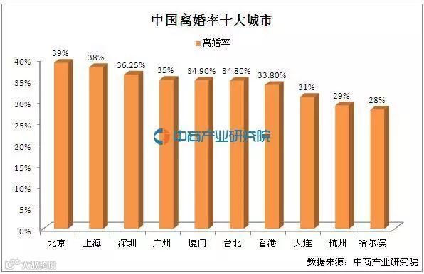 国家民政部统计显示:中国离婚率十强城市分别是北京、上海、深圳、广州、厦门、台北、香港、大连、杭州和哈尔滨。其中,北上深广位居前四。
