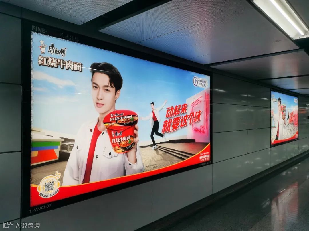 在线下,康师傅红烧牛肉面通过户外灯箱重点市场广覆盖,延续线上热度,吸引粉丝线下打卡,并预埋后续动作,调动广泛注意,随后上线的地铁大媒,更是以震撼的视觉效果承接大众期待,助力传播效果落地,硬核抢占传播生态位。