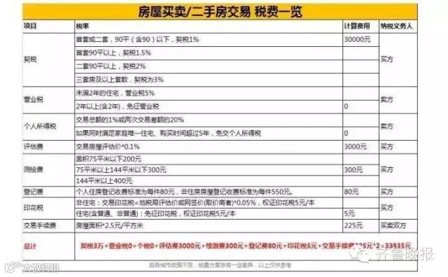 80元登记费+3万元契税(1%)+3000元评估费(0.1%)+230元交易费,总计33835元。这!么!少!
