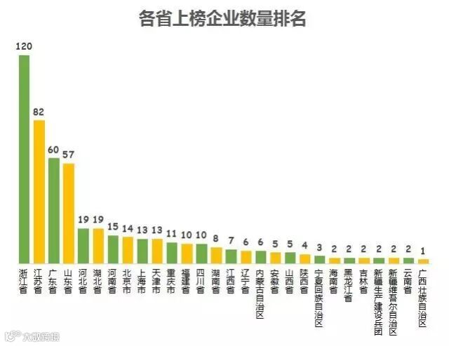 一方水土养一方人,从2017年中国民企500强诞生地来看,浙江、江苏、广东三地入围企业数量继续排在前三名。广东上榜企业较去年增加10家,浙江省对比去年减少14家,江苏省减少12家。
