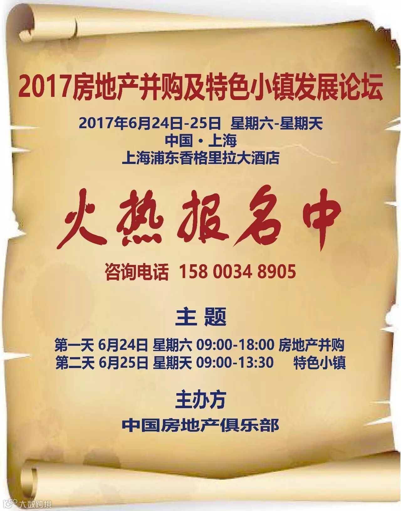 ☞ 【邀请函·上海浦东香格里拉大酒店·6月24-25日】2017房地产并购及特色小镇发展论坛暨第十七届上海论坛
