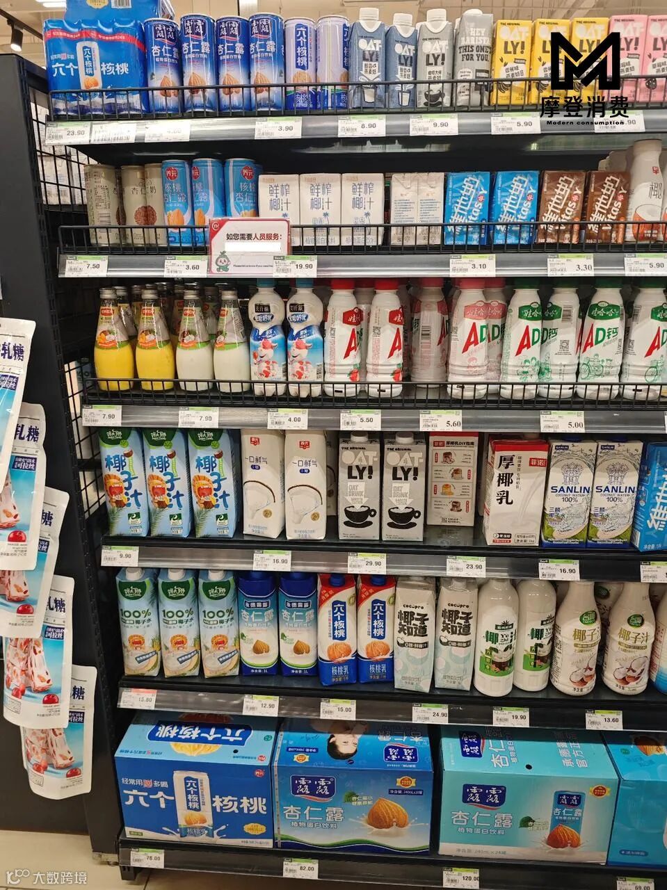 “杏仁奶新品没有优惠,整箱买也是一瓶7.5元。”超市酒水饮料区的销售员对笔者表示,他观察过,这个价位下,有消费者愿意买一瓶新品尝试一下,但更多的人看到7.5元的价格后,将手伸向4元的杏仁露或者其他品牌的饮料。