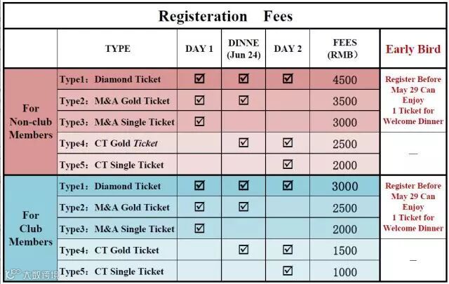 (2) The organizer will arrange welcome dinner on Jun 23 2017 to provide more communication chance for delegates, you should pay ¥ 500/Person more for welcome dinner if you want to join it(You can enjoy the discount for early bird).