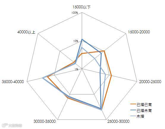 图:各婚姻情况不同客群在不同单价段项目来访占比
