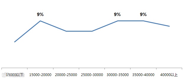 图:不同单价段项目客户重复来访率(单位:元/平方米,%)