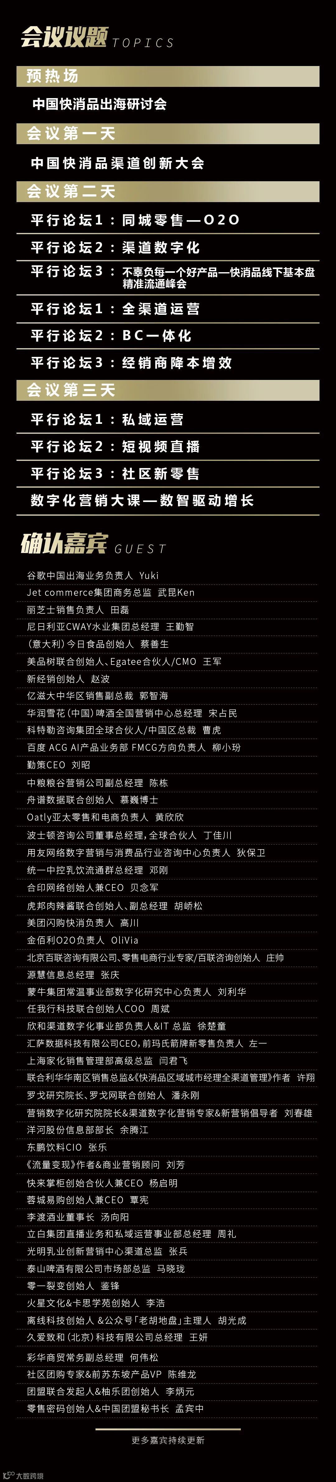 围绕着“夯实基本盘,做强基本盘,再造基本盘”,106位快消大咖重磅嘉宾,共赴2022上半年快消行业最大盛会!