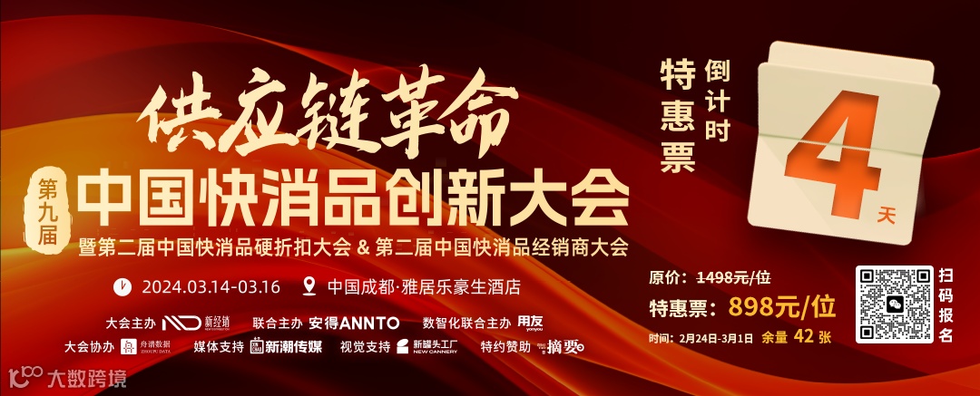 本届大会将围绕「供应链革命」为主题,3天时间,一场主论坛,一场中国快消品硬折扣大会,一场中国快消品经销商大会,十余场分论坛及闭门交流会,更有第一次重磅亮相的【极致供应链】品牌工厂现采会,将与来自全国的数千名快消品品牌商、经销商以及零售变革者、产业服务者一起相约成都,持续烧脑,共同探讨供应链革命时代的挑战与机遇,变革与出路。