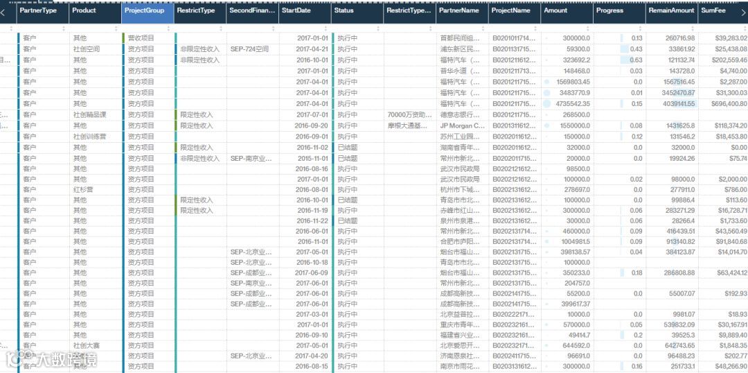 在正式使用IBM Watson Analytics进行数据探索和分析之前,先来简单了解下要分析的数据。这份数据里可以分析的是有关项目的收入和费用等问题。