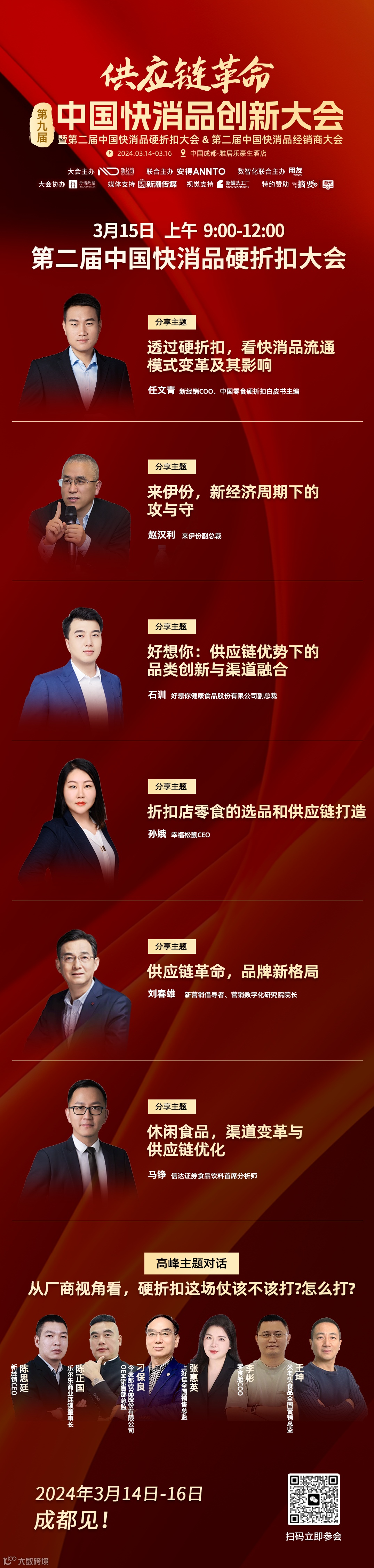 第九届中国快消品创新大会暨第二届中国快消品硬折扣大会&第二届中国快消品经销商大会,进入倒计时5天!