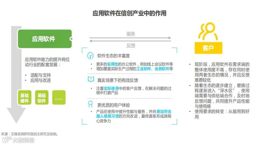 从产业链各环节发挥的作用来看,应用软件是拉动信创产业发展的重要突破口之一。只有应用软件运行在真正的使用环境下,通过客户持续反馈打磨产品,带动产品成熟度的提升,才能使信创产业焕发活力。