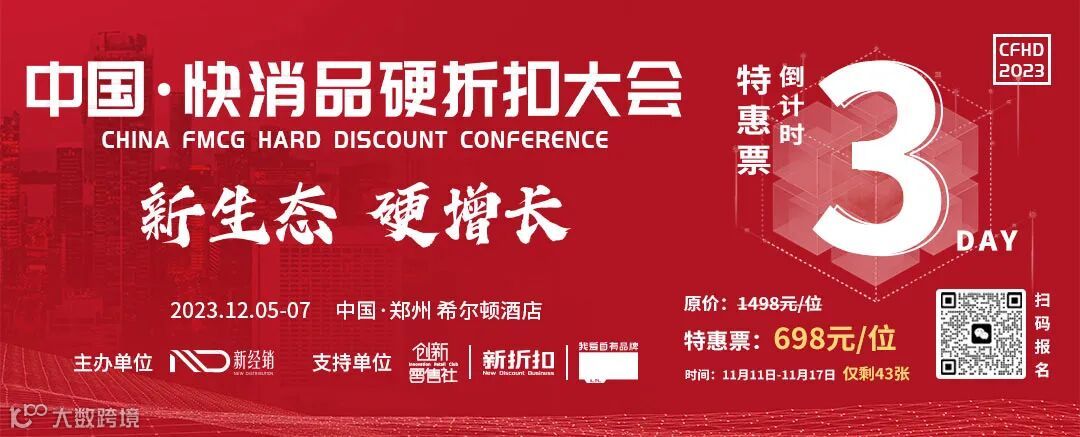 PS:2023年12月5日-7日,「新经销」将在郑州举办第一届中国快消品硬折扣大会。本次大会,2天议程,是全行业首个聚焦硬折扣主题的大会。