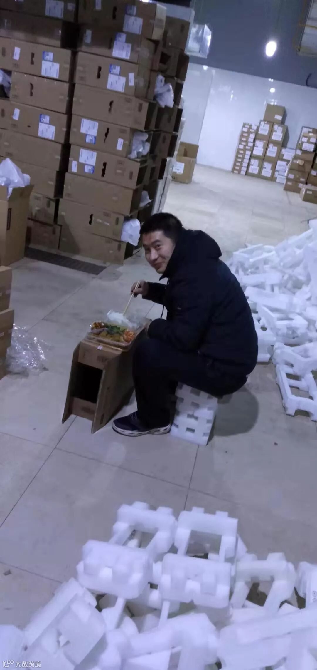 负责人告诉我们,机房的网络和电力方面都需要现场对接开通,让我们先去吃饭。他又反复叮嘱我们洗手、消毒、戴口罩、不要聚众吃饭等。我和力明从餐厅打了饭,回到仓库,用设备包装盒做餐桌,坐在包装用的泡沫塑料上吃完了今天的第一餐。