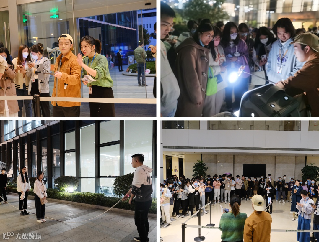 人群中两位伙伴化身抖音主播,全员激情连线、在线互动、抽奖,给身边的猿媛们带去实实在在的关爱~