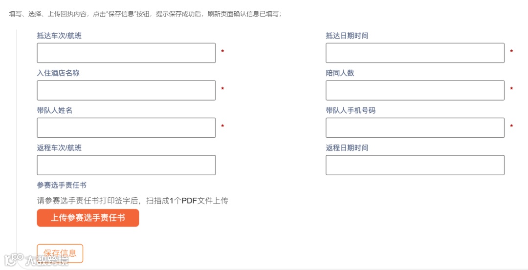 点击【参赛报名】按钮,进入报名回执信息填写页