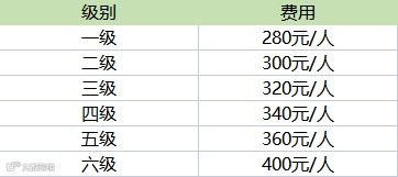 (4)报名费用:报考等级不同费用也不同,具体可见下方表格。