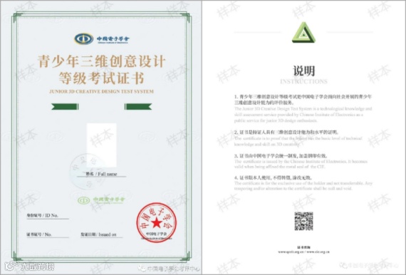 等级考试通过后,将颁发中国电子学会盖章证书。该证书含金量高,是孩子成长中素质教育水平能力的权威证明,对于丰富孩子履历、增强孩子核心竞争力有重要影响。