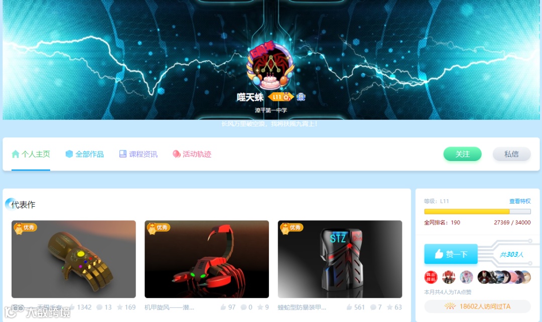 Hi~,我是来自山东烟台的一名初三学生,接触三维创意设计已经6年了,受到兔子老师的邀请,今天和大家分享一下我的社区心得。