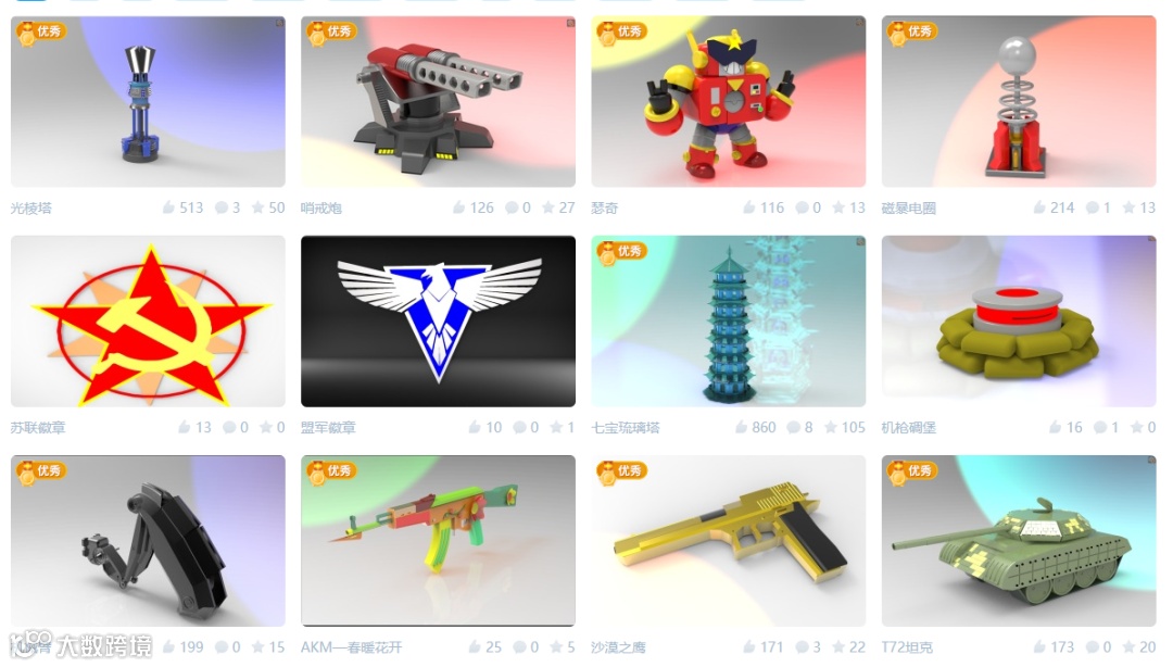 时间往后推推,通过对i3DOne社区资源的学习和应用,我对3D One的功能也熟悉差不多了,后来的我迷上了#军事题材#,一个名为#军事用品#的模型商店便出现了,这可以说是我三维创意设计学习史上的一个“转折点”。从这以后,我的作品总算是有拿得出手了。