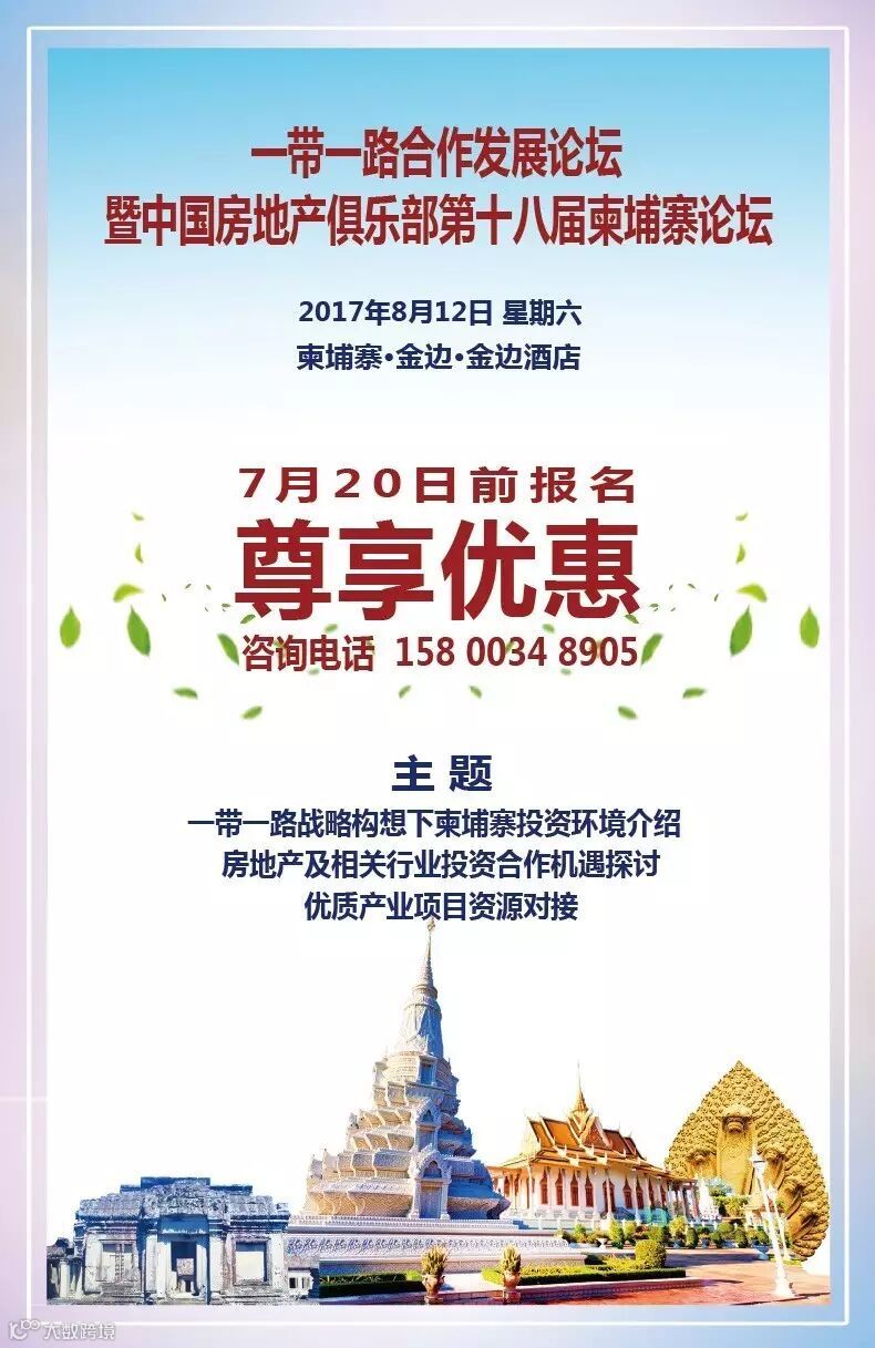 ☞邀请函•柬埔寨金边酒店•8月12日】一带一路合作发展论坛暨中国房地产俱乐部第十八届柬埔寨论坛