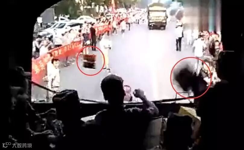 从视频里依稀能分辨,很多人扔的都是用箱子装的食物和饮水。车上的人也不停地在挥手致谢。