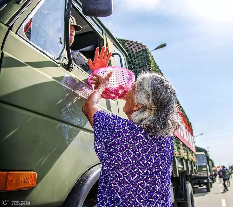 这种往官兵车里扔食物的做法,或许就是军民之间的“掷果盈车”吧。