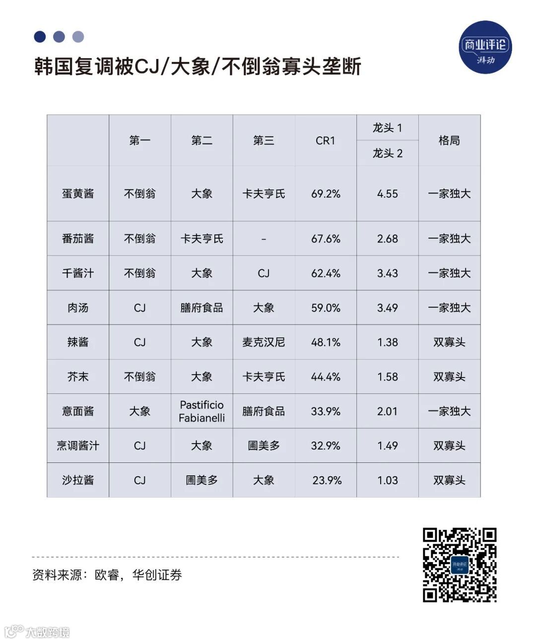 韩国复调品牌要么一家独大,要么双寡头垄断,集中度非常高,而且本土企业优势突出。