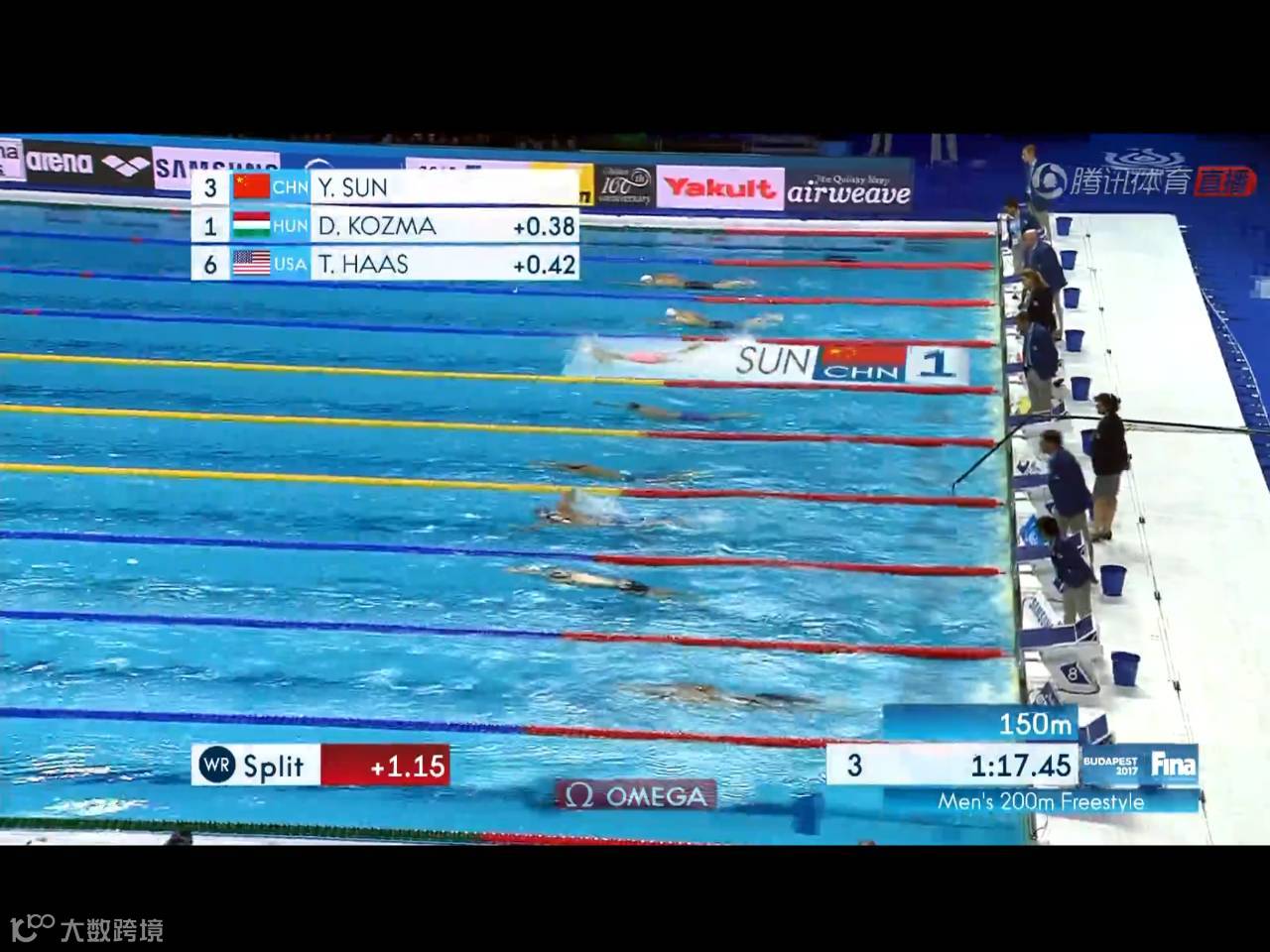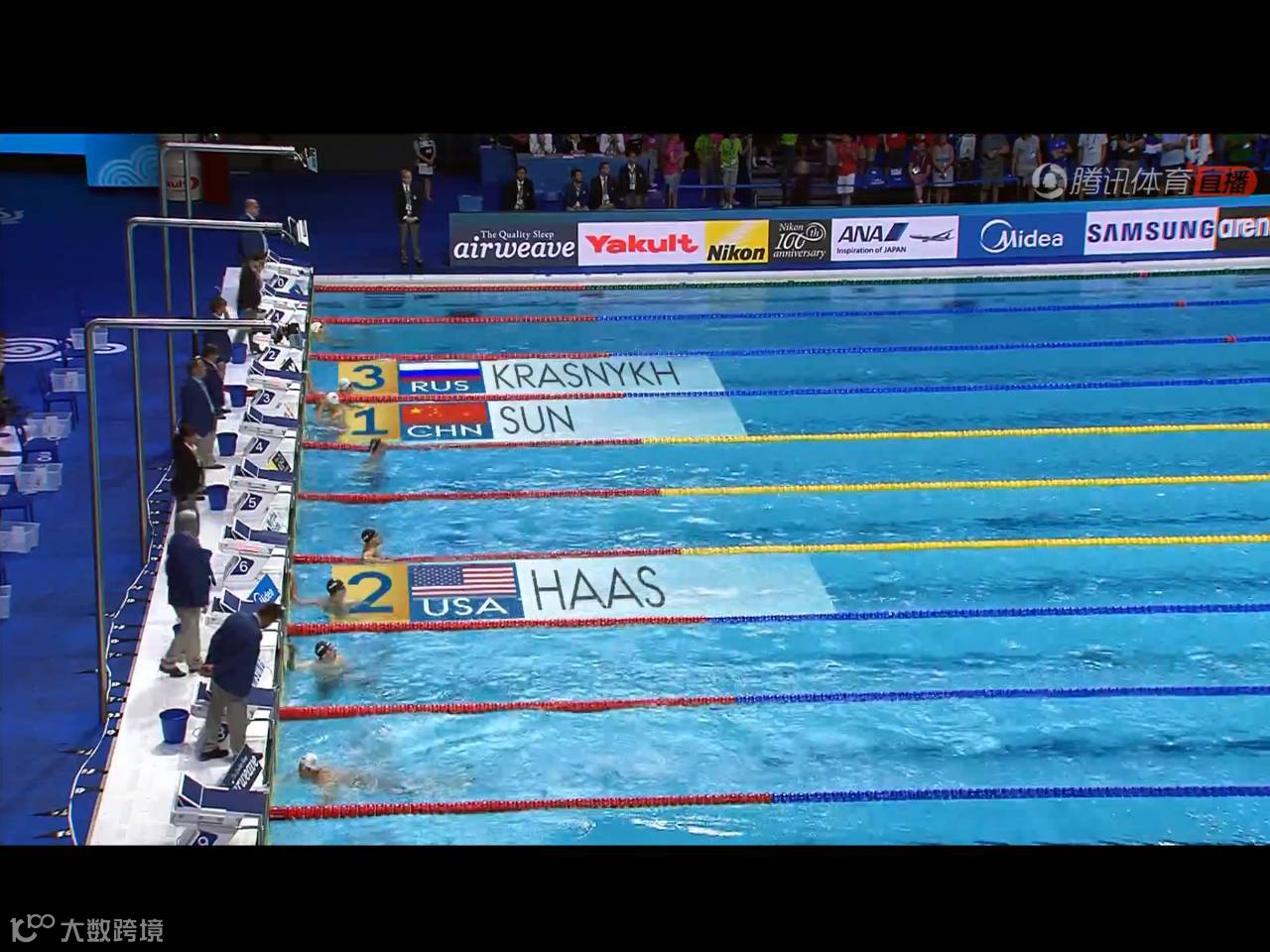 不过在第3个50米游完,孙杨已经实现反超。