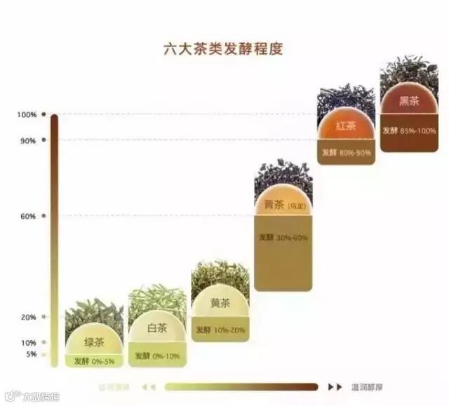 六大茶类的划分基础是在制作中,由茶叶发酵的不同程度决定的。发酵程度同时影响着茶的口感和功效,这就是为什么你要了解它的原因所在。