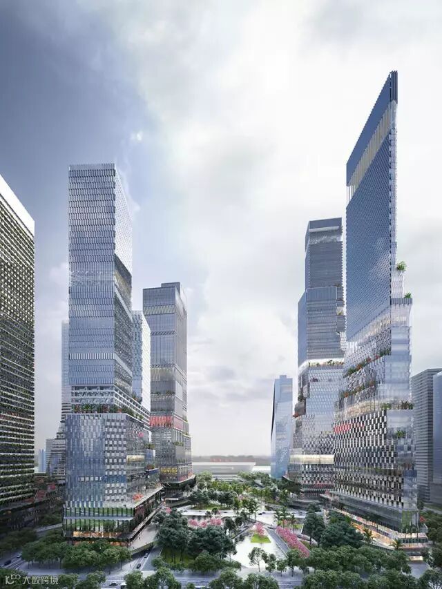 整个项目预计占地 136 万平方米,将包括 12 座摩天大楼,一座人行天桥以及一个城市公园。从 Mecanoo 发布的效果图看,公园将位于正中,摩天大楼将分布在其两侧,而人行天桥网络将连接所有的建筑。