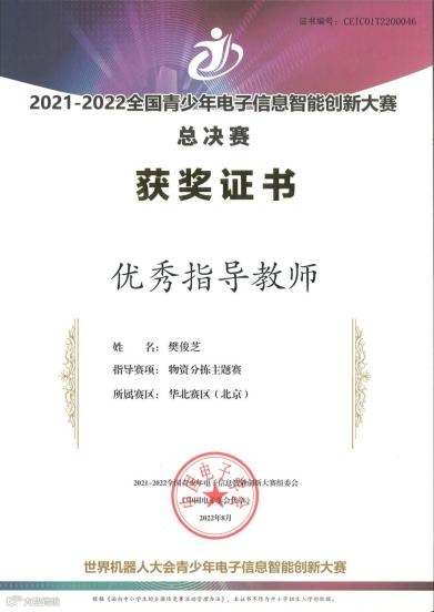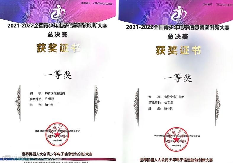 (1)全国青少年电子信息智能创新大赛 ——物资分拣主题赛:获34个奖项。国赛一等奖4项、国赛二等奖8项、国赛三等奖1项、省赛一等奖6项、省赛二等奖7项、省赛三等奖7项、优秀指导教师1项