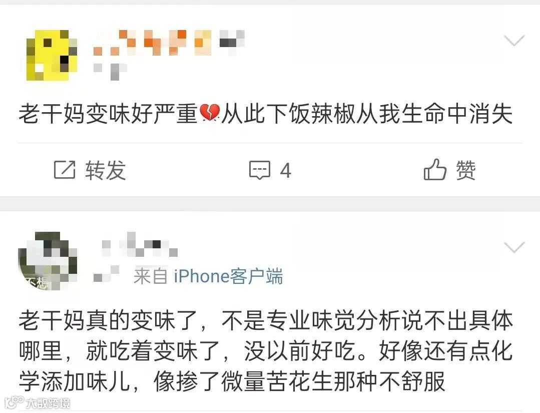 事实证明,永远别拿消费者当傻子。大家虽不知道工厂里发生了什么,但吃了十几年的味儿,变没变还能不知道吗?辣酱不好吃,别说牌子是老干妈,老干祖宗也不行。