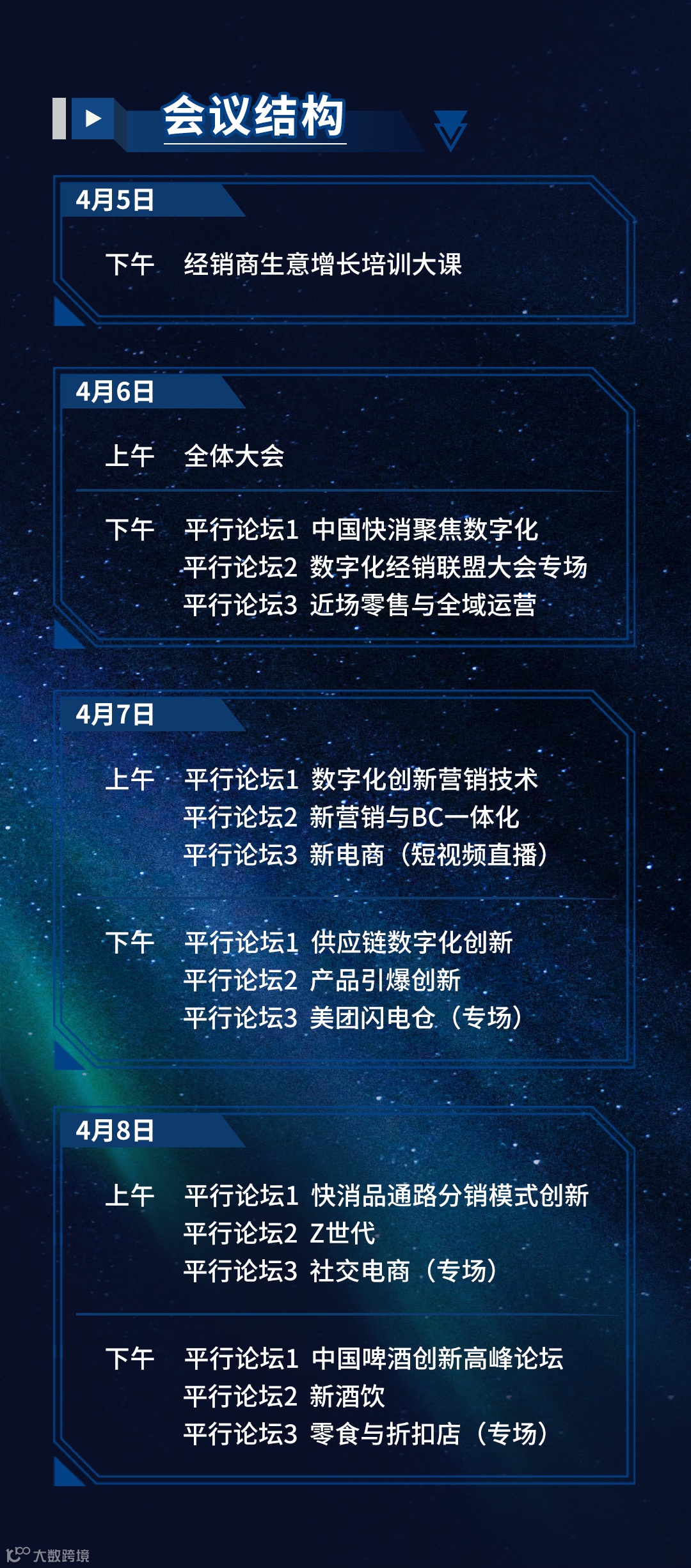 本次大会将围绕【新世界 新快消】为主题,3天时间,130位嘉宾,16场平行论坛,聚焦行业头部品牌高管、平台创始人、全国各地优秀经销商等,共同探讨在新世界时代下,关于快消行业的最新动向,渠道的最新变化,市场发展的最新趋势,学会如何在新世界里,应对新变化,实现新增长,成为新快消!