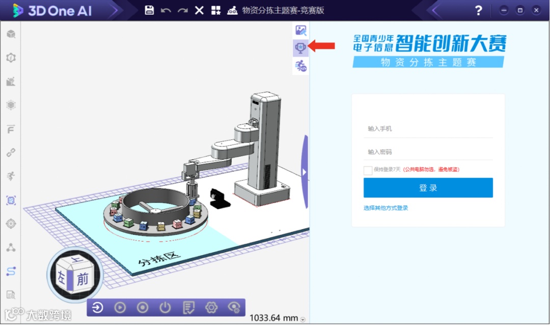 4.比赛开始前15分钟,场景将由系统派发到账号中,在软件中登陆账号能够看到对应组别的场景(注意:未到比赛时间无法显示)