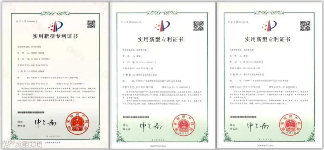 这是海旺学校凭借3D创意设计模型+电子硬件+程序智控的结合创意,连续三次获得国家发明专利。