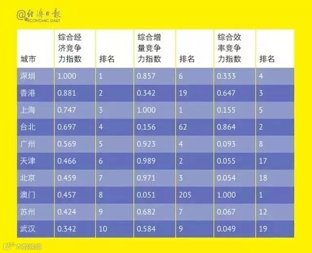 2016年中国城市综合经济竞争力十强(点击查看大图)