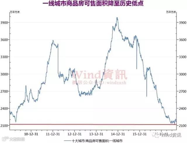 作为楼市热点的一线地区,可售面积更是一路下滑。