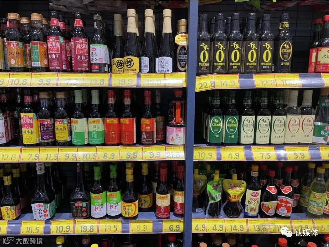 图片来源:超市里陈列的酱油产品,来源:钛媒体APP拍摄