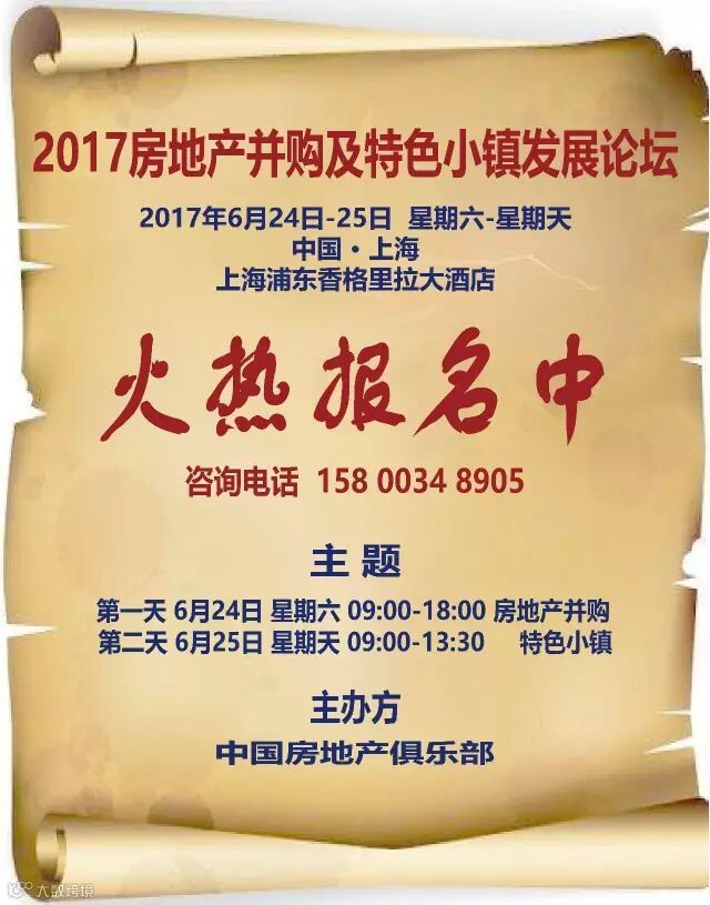 ☞ 【邀请函·上海浦东香格里拉大酒店·6月24-25日】2017房地产并购及特色小镇发展论坛暨第十七届上海论