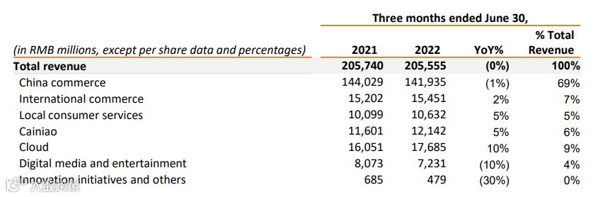虽然阿里在财报中提及“中国商业分部经调整EBITA下降,部分被饿了么的单位经济效益改善,致使本地生活服务分部的经调整EBITA亏损收窄所抵消”。但本地生活服务仍不是阿里营收的重点。