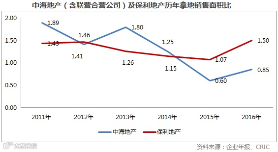 目前收购成本不少房企获取项目资源的主要途径之一,保利与中海在这方面也都比较积极。2016年保利地产就顺利地收购了中航地产和中航里程平台,并直接获取了440万平方米的土地资源,此外保利地产还通过中航的资源优势,在天津、珠海、三亚、南昌获取了4个项目,新增待开发资源580万方。但是在内部整合方面,保利地产与保利置业之间的重组也一直传的沸沸扬扬,却一直没有结果。2016年11月保利地产和保利置业因整合原因而双双宣布停牌,然而仅过了8小时就被宣告终止。虽然此前保利地产也多次提及将在2018年前完成与保利置业的重整,但据目前来看,还有待观察。