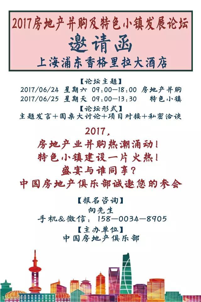 ☞ 【邀请函·上海浦东香格里拉大酒店·6月24-25日】2017房地产并购及特色小镇发展论坛暨第十七届上海论坛