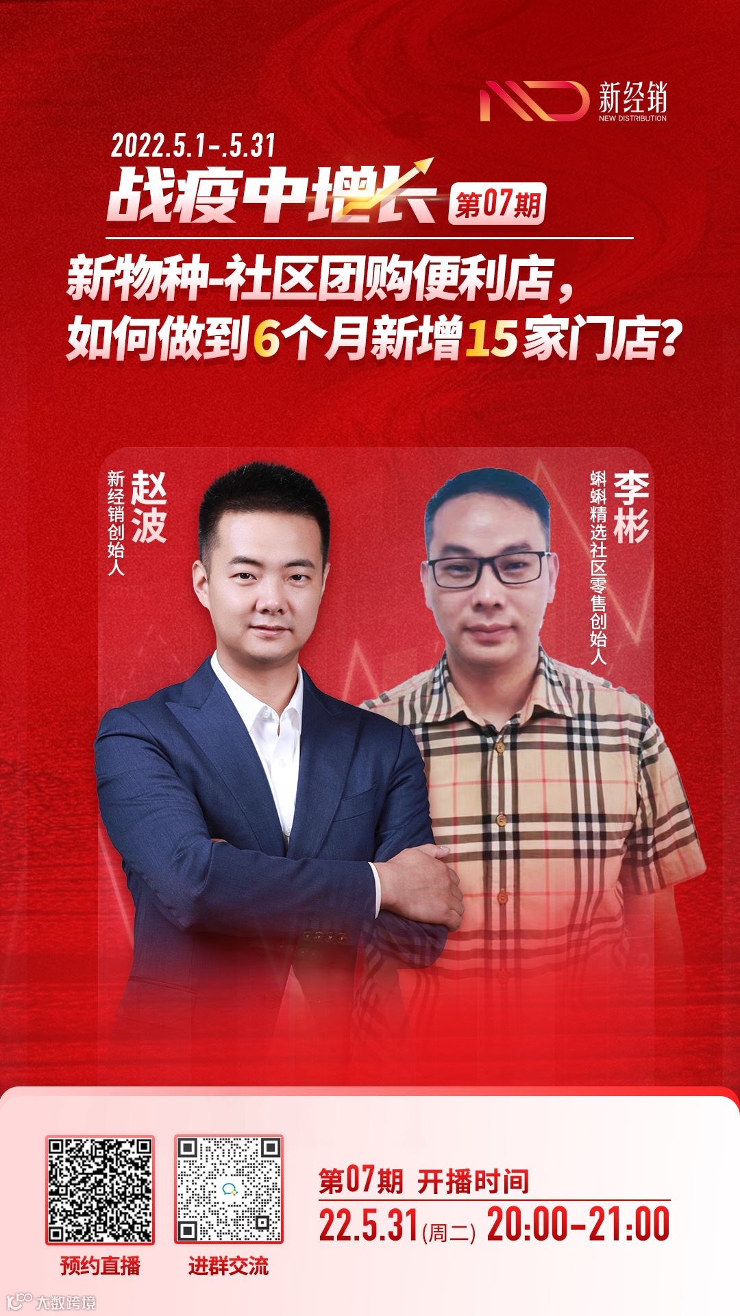 。将持续邀请营销专家,在战疫中获得胜利甚至巨大胜利的品牌商一线指战员、优秀经销商,在「新经销」视频号直播间中与大家见面,现身说法。讲述他们是如何在这场艰苦卓绝的战疫中取得阶段性胜利的,他们又有哪些经验和教训可以为你借鉴。